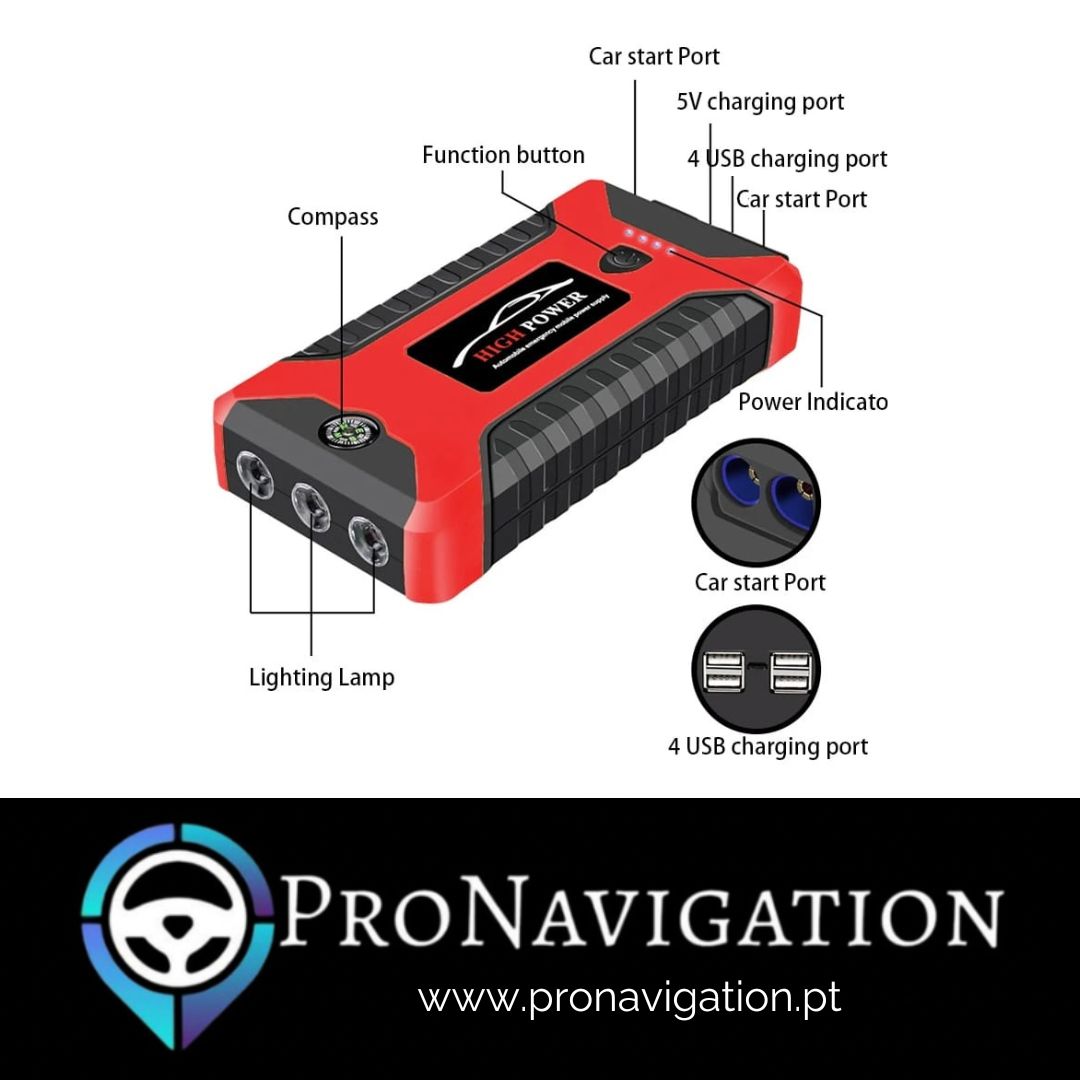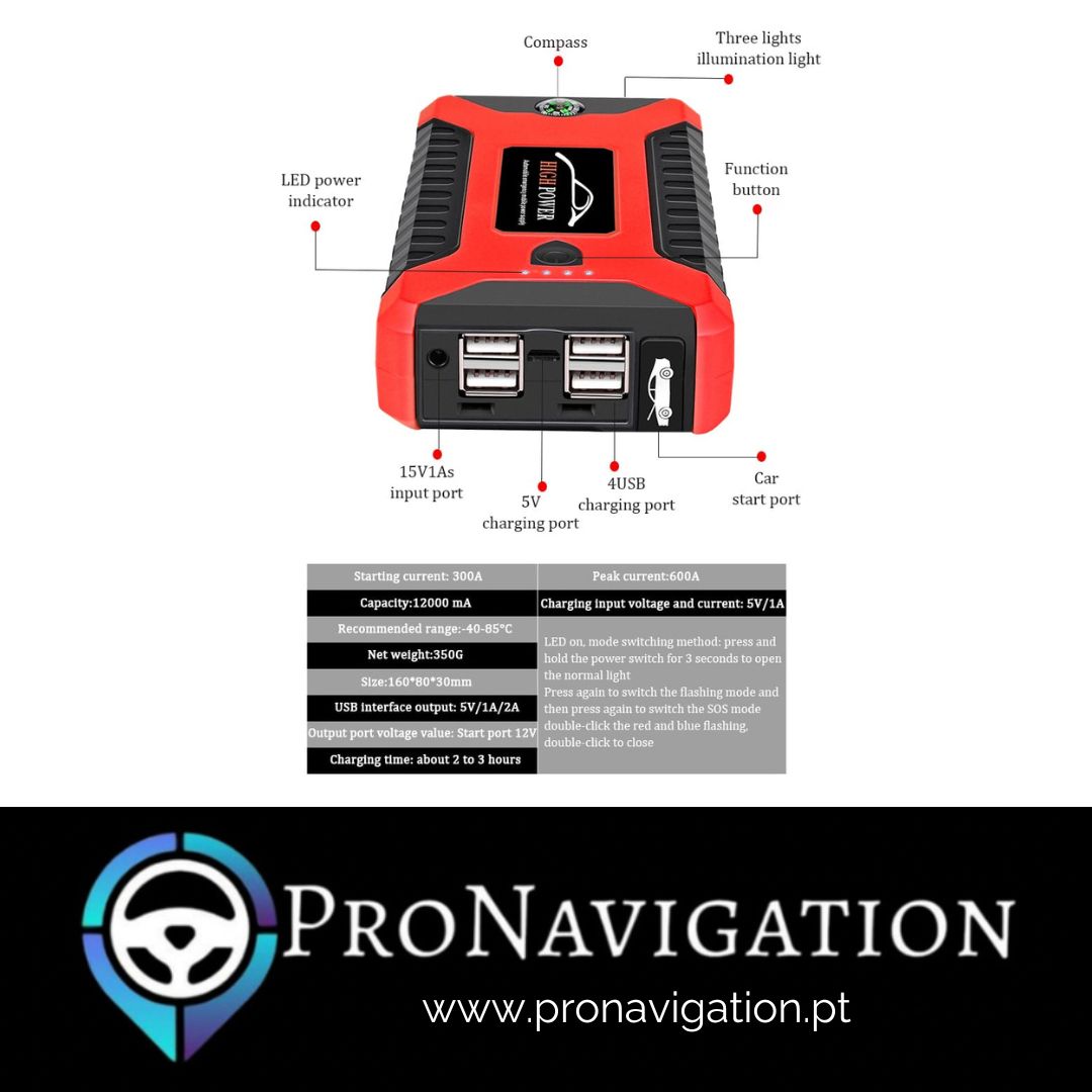 ▪︎ Com pico de 600A e uma bateria de 12000mah, é perfeito para que consigas dar o arranque no teu carro quando ficares sem bateria.