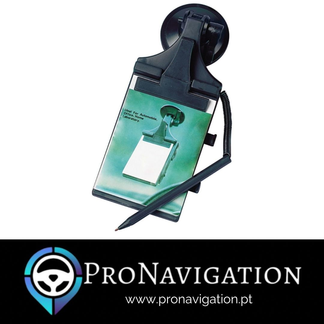 - Fixa-se fortemente no parabrisas devido à sua ventosa de grande qualidade, dispõem de um bloco de notas para colocar os seus apontamentos e inclui uma caneta para que os consiga escrever;